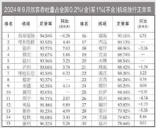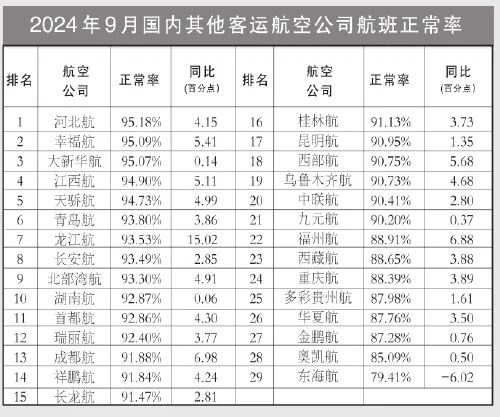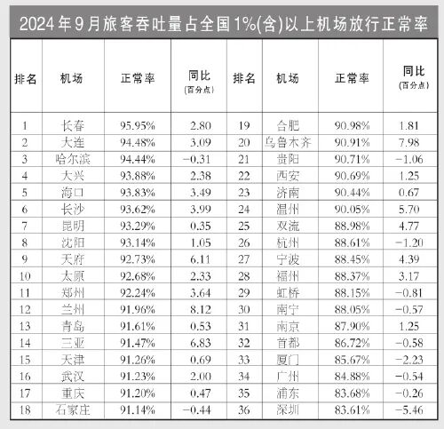 统计|2024年9月国内客运航空公司、主要机场正常率统计结果
