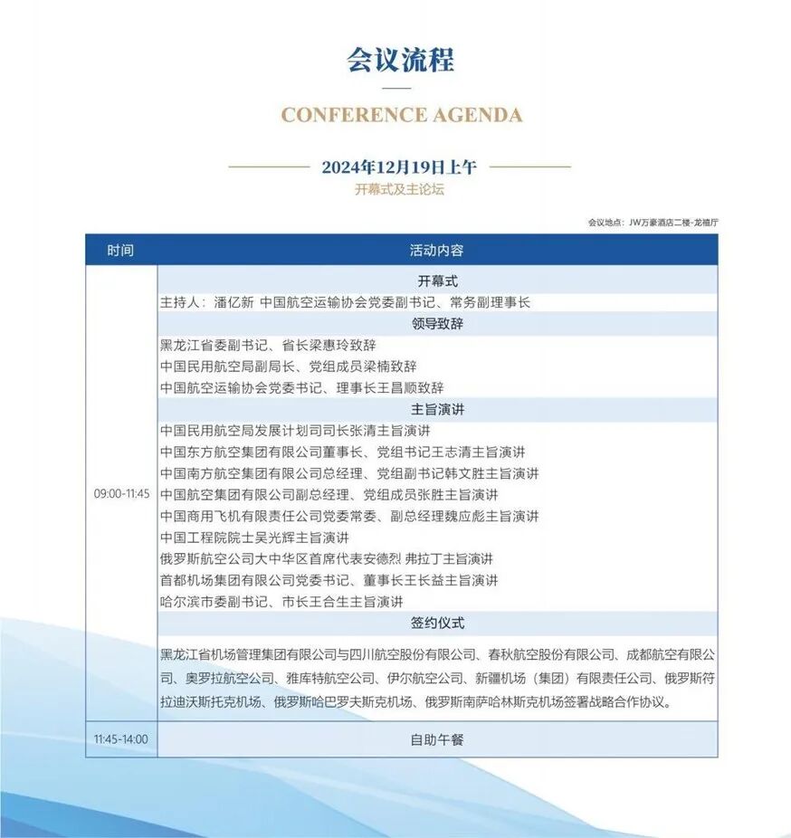 为认真贯彻党的二十大和二十届二中、三中全会精神,落实《关于推进国际航空枢纽建设的指导意见》部署要求,加快哈尔滨国际航空枢纽建设,由中国航空运输协会主办的哈尔滨国际航空枢纽建设发展大会将于2024年12月19日正式开幕。本次大会以“对外开放新高地,国际枢纽新篇章”为主题,重点围绕“哈尔滨国际航空枢纽建设”和“航空产业及临空经济融合发展”开展研讨。大会邀请到黑龙江省委、黑龙江省政府、中国民用航空局、国内外航空公司和机场、民航各地区管理局、行业协会、运输保障单位、飞机制造商、相关企业、研究机构及院校的领导和专家学者参会,共同为加快哈尔滨国际航空枢纽建设,推动东北全面振兴出谋献策。